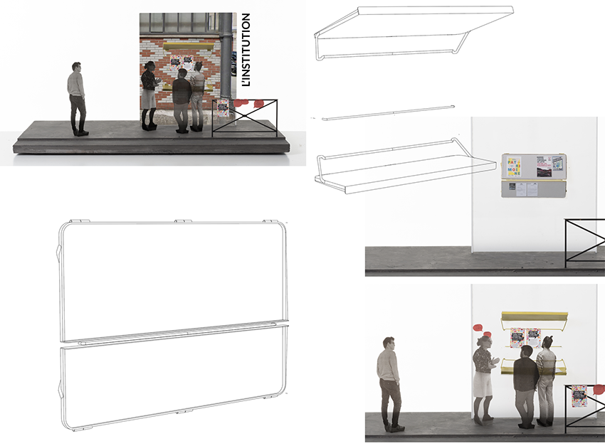 - Si en ville, le seuil semble presque exclusivement marchand, le regard se porte sur l’institution publique. Décalage saisissant entre sa mission publique et la muette austérité de ses facades, je cherche à rendre poreux, faire sortir;