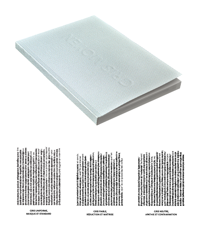 Å la large thématique de l´entre-deux et du compromis, je choisis une approche colorée. D´une réflexion sur la position intermédiaire du designer dans le projet, j'en viens au gris, image forte et relativement connotée de l´entre-deux en couleur. Neutre, commun, trouble, fade, il devient mon point d´entrée pour aborder ces notions. Å la fois sujet et image du sujet, mon mémoire prend la forme d´une balade libre à travers différentes figures de gris, mettant en relief sa place si particulière au sein de la couleur.