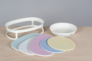 Mô est une gamme d'objets acceuillant des aliments composés de parties souples. Un jeu avec une nouvelle matière, un rapport plus sensible aux objets qui permet de fluidifier les mouvements dans la cuisine et ainsi d'en faciliter l'accès aux malvoyants.