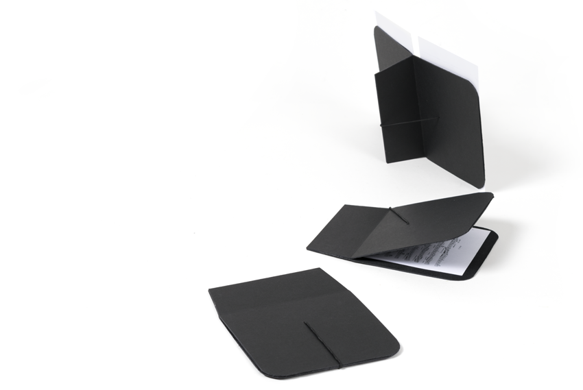 The second one is a simple cardboard folder for music sheets. When opened, it becomes a angled back.