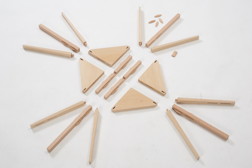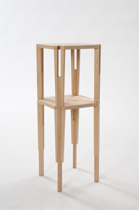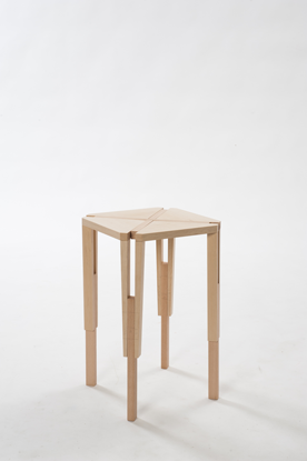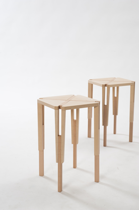 Un travail du bois et des assemblages à travers un tabouret de bar composé en réalité de deux tabourets emboités. Décomposer en multipliant son mobilier.